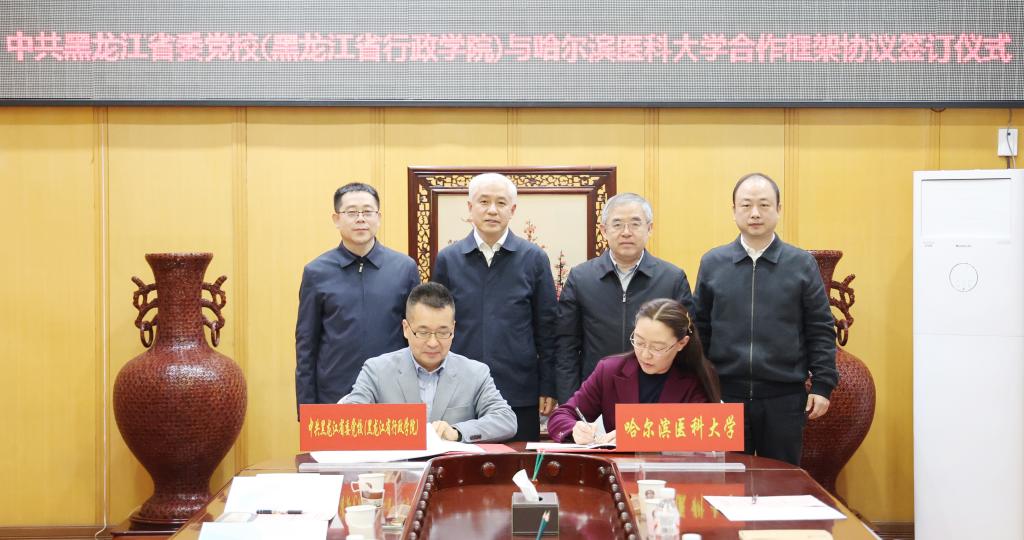 学校党委副书记东梅与中共黑龙江省委党校(黑龙江省行政学院)副校长王宏宇签署合作框架协议。