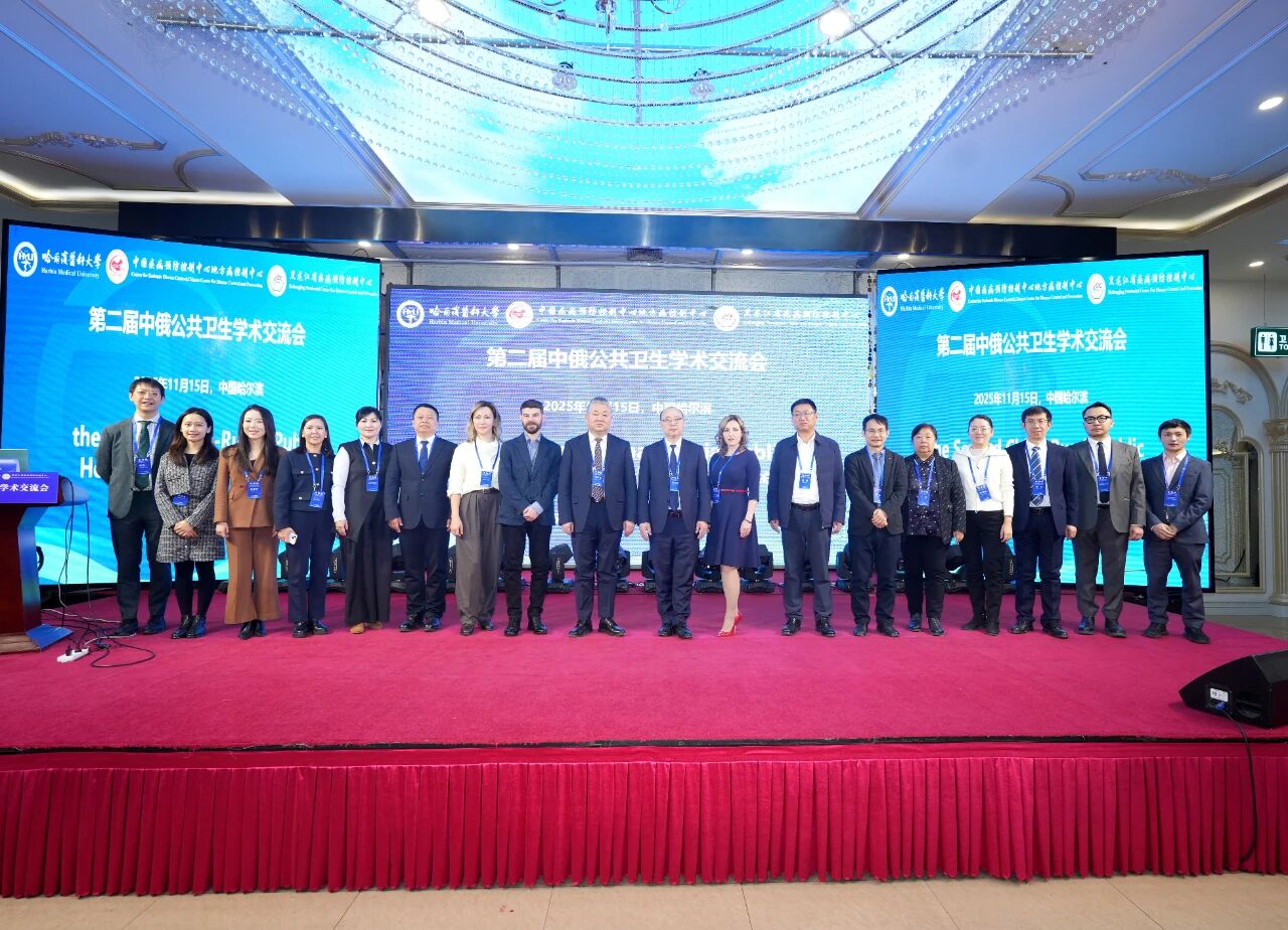 2025 年 11 月 15 日,第二届中俄公共卫生学术交流会在哈尔滨市成功召开。本次会议由哈尔滨医科大学、中国疾病预防控制中心地方病控制中心、黑龙江省疾病预防控制中心联合主办。本届会议在首届成功举办的基础上,进一步扩大了参与范围,汇聚了来自中国、俄罗斯、哈萨克斯坦、蒙古等国公共卫生领域的多位权威专家与学者。本次学术交流聚焦公共卫生领域的新特征、新方法、新策略和新成果,分享智慧经验,旨在推动以中俄医科大学联盟为引领的中国同欧亚各国在医学领域的深度互联,构建更加紧密的协作关系。