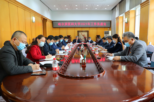 张斌在务虚会动员讲话中强调,此次务虚会是战略谋划、顶层设计的一个有力举措,会议在寒假期间,在全校上下按照省委省政府的部署积极投身疫情防控这场硬仗的背景下召开有着特殊意义。2021年是中国共产党建党100周年,哈医大建校95周年,“双一流”建设的攻关之年,也是学校“十四五”规划的开局之年,“十四五”期间是实现百年医学强校目标最为关键的时间段。做好今年学校发展建设工作、迈好“十四五”时期第一步,至关重要。第一步要迈准迈稳,迈出新气象,迈出新成效,提前谋划是关键。现在已经进入2月份,时间紧迫,希望大家以时不我待的精神状态带头思考学校整体工作。