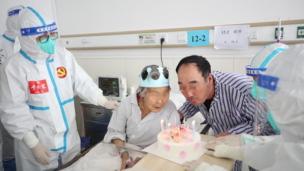 2月5日,一位94岁的老奶奶,被转运至救治中心。老人一直在间断的发热,医护人员非常关心老人的病情,于凯江组织联合会诊,制定康复期血浆等治疗方案,还经常到病房里查看老人的呼吸功能,问老人吃得好不好,睡得香不香,心情怎么样。
