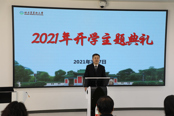 为贯彻落实黑龙江省教育厅《关于做好2021年度春季学期“开学第一课”等相关工作提示的函》等文件精神,做好春季开学工作,传承红色基因、讲好抗疫故事,激发爱党爱校情怀、致敬建党百年历史,3月7日,学校在外语学馆9号教室隆重举行2021年春季学期开学主题典礼。校长张学作题为“传承红色基因 弘扬抗疫精神 擦亮新时代青春底色 向党的百年华诞献礼”的主题报告,全校师生采取线上线下相结合的形式收听收看了整场典礼。党委副书记袁重胜主持典礼。