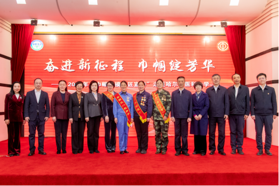 为大力弘扬劳模精神、劳动精神、工匠精神,凝聚全省女职工团结奋斗力量,3月25日,由省总工会、省妇联主办,省总工会女职工委员会、省教科文卫体工会、哈尔滨医科大学工会承办的“奋进新征程 巾帼绽芳华”——巾帼劳模工匠宣讲活动在我校举行,这也是我校师生的一场“医道学途 大思政课”。全校师生代表240余人现场聆听巾帼劳模奋进故事,吸引了近3万名省内职工在黑龙江工会融媒矩阵线上直播平台同步观看。省总工会党组成员、省教科文卫体工会委员会主席吕光英,省总工会副主席、党组成员吴琼,省妇联副主席、党组成员柏英,学校党委副书记东梅,学校党委副书记、工会主席金焰,省总工会及学校相关部门领导莅临活动现场。