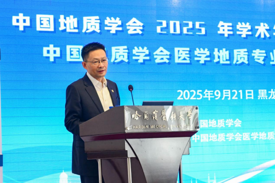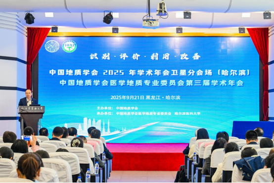 9月21日,由中国地质学会主办,中国地质学会医学地质专业委员会与哈尔滨医科大学共同承办的第三届医学地质学术年会在学校主楼三楼演讲厅召开。本次年会以“识别·评价·利用·改善”为主题,吸引了来自全国各地的专家学者、科研人员及高校师生齐聚冰城,共同探讨医学地质领域的前沿进展与未来方向。