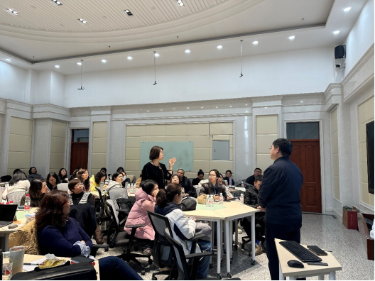 上午专题讲座在教学实验楼智慧教室进行,张兴文教授以《“大模型 智能体”驱动的数智教学创新与实践》为题,从“ai+智慧教学资源”创建、“大模型 知识库”智能体应用及“师-生-机”三元协同的ai4s实践三个方面为切入点,通过沉浸式教学场景设计,系统阐释ai技术在教学全链条的赋能路径,参训教师基于讲授内容提出关切问题,相互交流,现场互动气氛热烈。
