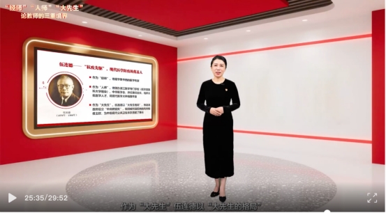 李中华在授课中深入阐释教师职业发展的三个维度。她援引习近平总书记关于“四有”好老师的重要论述,结合马克思主义教育观指出:“经师”是基础,要求教师以扎实学识传授知识,在学科专业上深耕细作;“人师”是升华,强调以人格魅力感染学生,通过“一言一行皆教育”的示范作用,帮助学生扣好人生第一粒扣子;“大先生”则是终极目标,要求教师胸怀“国之大者”,将个人理想融入民族复兴伟业,成为“塑造灵魂、塑造生命、塑造新人”的时代楷模。