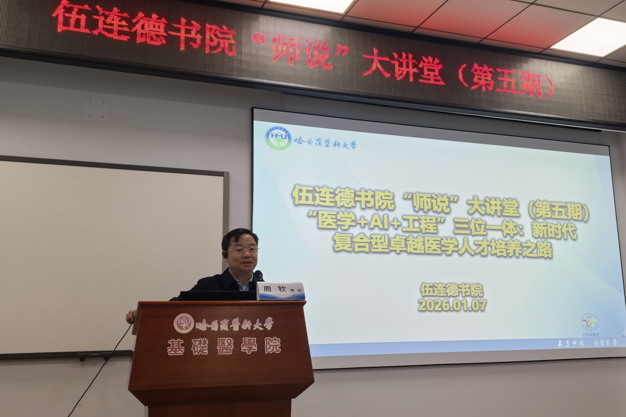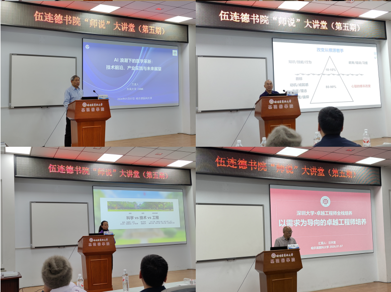 1月7日下午,伍连德书院“师说大讲堂”第五期活动顺利举办。本次讲堂活动以“‘医学 ai 工程’三位一体:新时代复合型卓越医学人才培养之路”为主题,邀请多位生物医学工程领域知名专家,共同探讨医工交叉融合背景下的医学人才培养新范式,为基础医学长学制学生赋能职业生涯规划,开拓医工交叉融合新视野。副校长周钦出席活动并致辞。