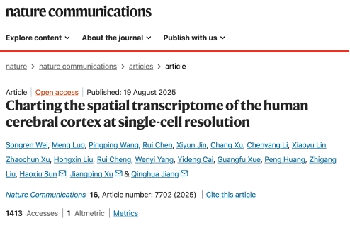 wei, s., luo, m., wang, p. et al.charting the spatial transcriptome of the human cerebral cortex at single-cell resolution. nature communications.2025 aug 19;16(1):7702.