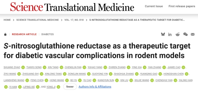 季勇教授团队首次揭示gsnor介导糖尿病血管并发症新机制并提出干预新策略