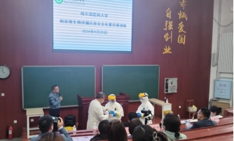 为了筑牢实验室生物安全意外事件的防范意识,熟悉生物安全应急预案的操作流程,培训团队和我校基础医学院病原微生物实验室的教师与研究生通过还原流感病毒泄露事故现场,模拟了针对实验室突发事故,如何做好人员自救、警戒隔离、医疗救护、事故上报、应急决策、安全处置,应急恢复与落实整改的全过程。演练人员严格按照病原微生物意外溢洒事故处置程序,操作娴熟,从容镇定,应急处置流程与措施合理得当,实操演练顺利完成。