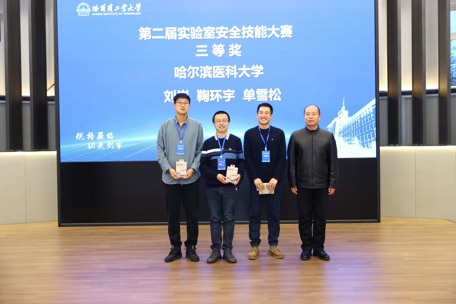 10月31日,由黑龙江省高等教育学会、高校实验室管理专业委员会主办的实验室安全技能训练营暨第二届实验室安全技能大赛在哈尔滨工业大学举行。大赛设校内、校外两组,校外组设一、二、三等奖各一个,来自省内各地高校的35支队伍,共132名参赛选手参赛,我校代表队由刘岸、鞠环宇、单雪松3位教师组成并荣获校外组三等奖。