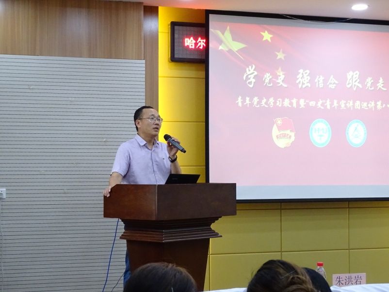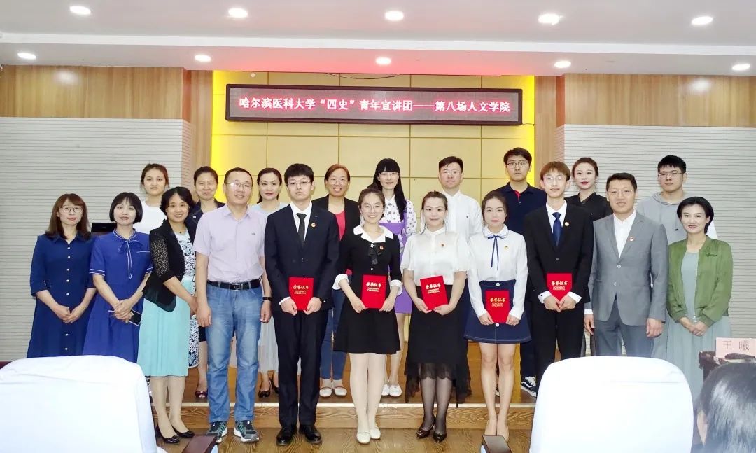为庆祝中国共产党成立100周年,深情回顾党的奋斗历史,引导青年厚植爱党、爱国的情感,让红色基因、革命薪火代代传承,根据共青团哈尔滨医科大学委员会党史学习教育工作安排,6月23日,“学党史 强信念 跟党走”青年党史学习教育暨“四史”青年宣讲团巡讲第八场在哈医大人文学院隆重召开。人文学院党委书记黄永柏致辞,学校团委书记王曦、人文学院院长尹梅、人文学院副院长朱洪岩、校团委青年宣讲团指导教师姜欢、苗新秀楠、人文学院各支部书记及支委及人文学院学生参加了报告会,2017级市场营销专业张金子同学等四位宣讲员做了党史专题报告,报告会由学院团委副书记张晓奥主持。