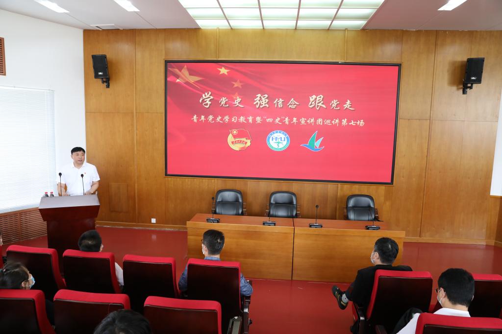 6月18日,哈医大团委与医院团委联合开展的“学党史、强信念、跟党走”青年党史学习教育暨“四史”青年宣讲会在我院办公楼5楼大会议室召开,医院党委书记赵长宏、学校团委书记王曦、院党委副书记胡洪涛、院纪委书记袁贵生、院党委委员、学生党总支书记李迎军,学校团委青年宣讲团指导教师姜欢、院团委书记孙少星、以及我院各职能部门负责人和年级辅导员、全院青年团员、学生代表等现场参加了本次活动,其他人员采取线上方式收看。
