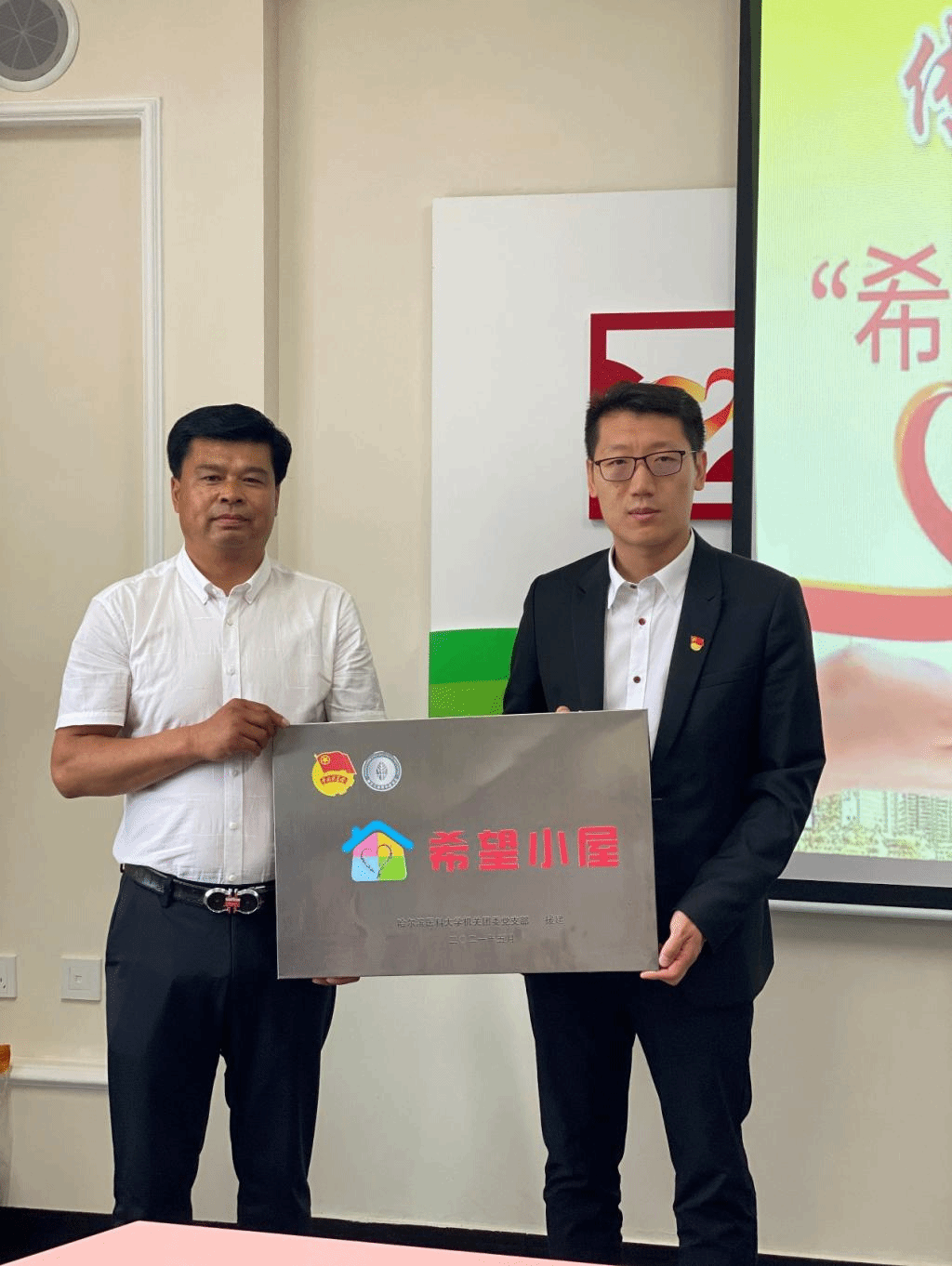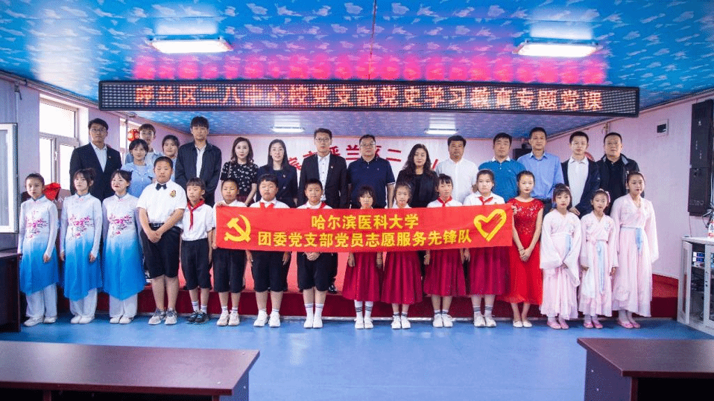 6月10日,哈尔滨医科大学机关团委党支部携手哈尔滨市呼兰区教育局领导、哈尔滨医科大学青年讲师团成员走进呼兰区二八中心小学,开展“希望小屋”建设主题党日活动。