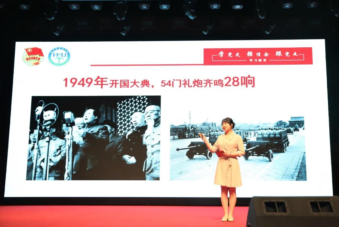 宣讲团张聪、赵羽樊、周一、芦俊中、关健五位成员依次为大家带来了主题宣讲《中国答卷解码“中国共产党为什么能”》、《中国新民主主义革命史之青年运动》、《一部党章百年史》、《西行漫漫,红星永存》、《青春扎根黑土,接力支教扶贫》,他们以党的故事为背景主线,结合青年人、青年事,用“小故事”支撑大道理,从学史读史中汲取精神力量,展现新时代青年听党话、跟党走的坚定信念,体现了哈医大青年一代奋斗者执着、坚韧、奋斗的青年风貌,成为推动党史学习教育走实走深的生动实践。