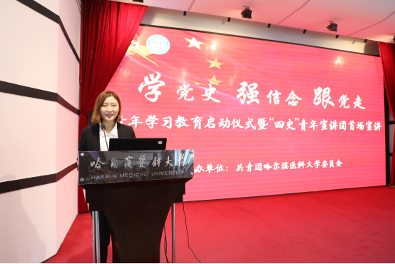 宣传员关健:《青春扎根黑土,接力支教扶贫》。2021年中国共产党百年华诞之际,我国脱贫攻坚战取得了全面胜利。习近平总书记指出:“扶贫必扶智。让贫困地区的孩子们接受良好教育,是扶贫开发的重要任务,也是阻断贫困代际传递的重要途径。”2020年9月,我校研究生支教团走进了黑龙江边境地区,开展了为期一年的支教生活。扎根黑土,异乡书写报国情,支教是基层实践的大熔炉,是教育发展的大舞台,是锤炼青年的大学校,哈医大研支团的青年们将一代一代的接过支教的接力棒,在中国共产党百年华诞之际,在向上的新时代,脚踏实地,不畏艰难,以忠诚、热爱、担当创造性的开启教育扶智路的新征程,不负党和人民的期望。宣讲现场气氛热烈,掌声不断,随着首场宣讲报告会的结束,面向全校青年的党史教育系列宣讲也正式拉开帷幕,青年宣讲团的成员接下来会走进学校、社区、农村、企业,开展面对面的主题宣讲活动,带领广大青年一起学史明理、学史增信、学史崇德、学史力行,用伟大精神鼓舞斗志、砥砺品格,把党史学习教育的成效实实在在转化为“以人民为中心”“为人民服务”的强大动力。