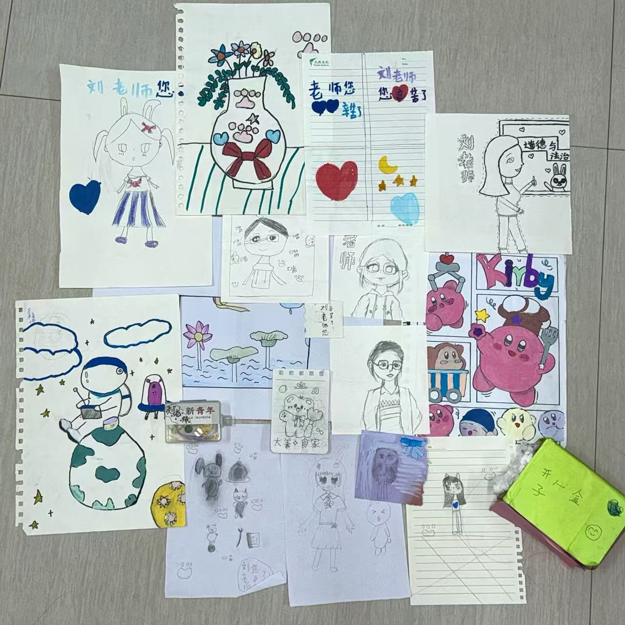 记得第一次上课的时候,我特别紧张,在教室门口徘徊了好久。我刚走进教室,学生们就把我围了起来,他们争先恐后地给我讲课间发生的趣事,向我展示他们上节课的作品,如此热闹的场面让我都不知道应该先听哪个同学讲话,我紧张的情绪也随着学生们的热情慢慢消散了。小朋友的认真和努力深深地打动了我,虽然他们年纪尚小,但是却有自己的想法。他们在课堂上会大胆提出自己不同的看法,也能表达清晰地表达、分享自己的故事。趁课间的时候,总会有学生跑到办公室来找我聊天,送给我他们在课堂上的手工作品。