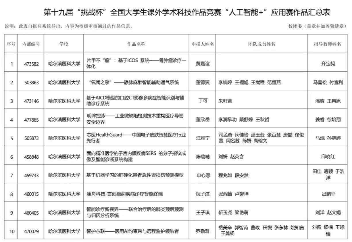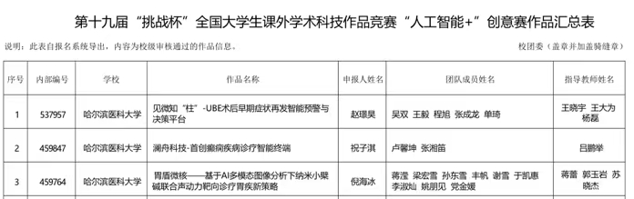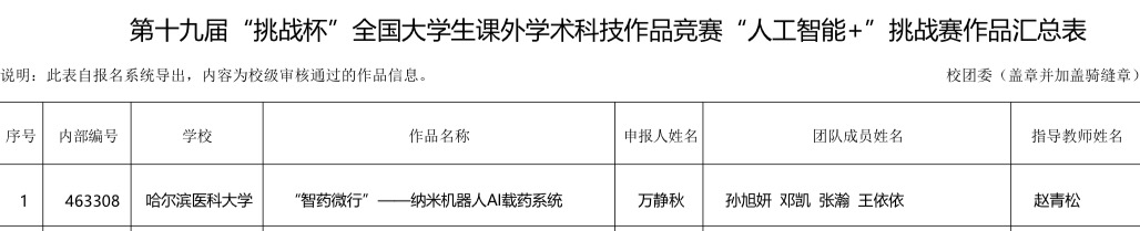 关于我校推报第十九届“挑战杯”全国大学生课外学术科技作品竞赛“人工智能+”专项赛项目公示