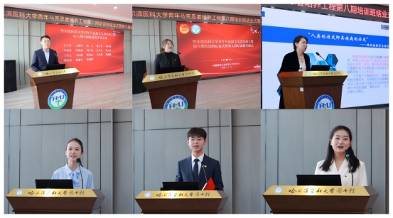 校团委书记王曦宣读《关于表彰哈尔滨医科大学青年马克思主义者培养工程第八期培训班优秀学员的决定》。马克思主义学院李珊老师作为授课教师代表发言。