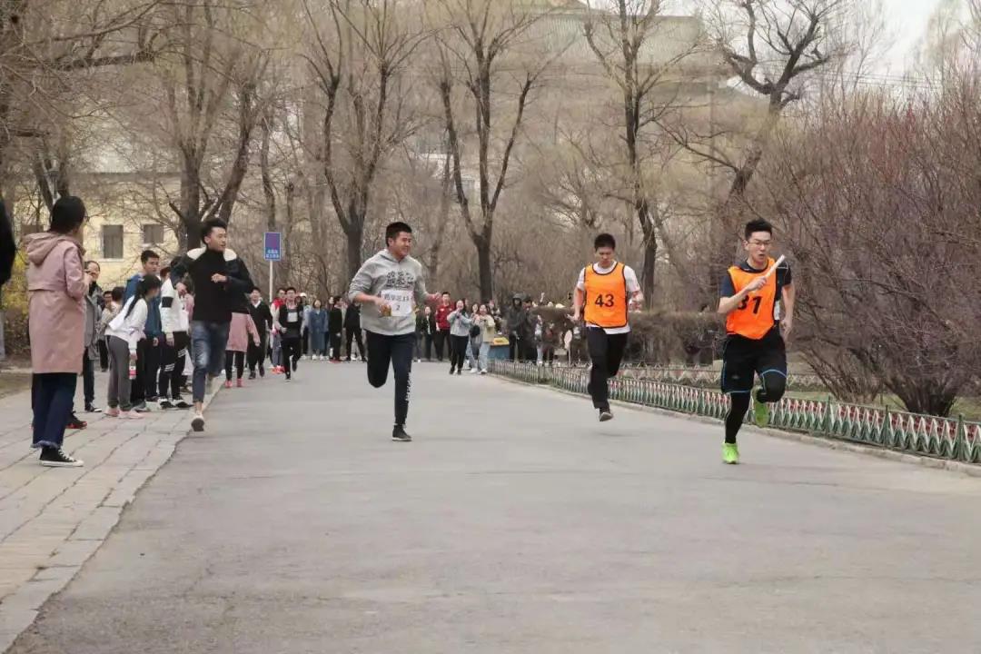 环校接力赛采用男女运动员交替接力的形式进行,第一棒的女生在主楼门前的主席台起跑,行至校南门标志点后向左转弯,然后逆时针环绕校园进行接力竞赛,第八棒的男生于主楼西侧拐弯至主楼门口起点处完成比赛。