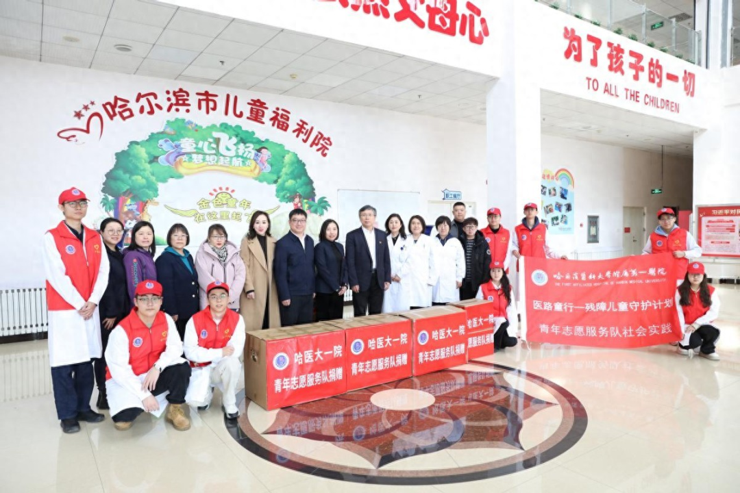 3月4日,在第62个学雷锋纪念日来临之际,由哈医大一院党委书记李悦、党委副书记迟秋君、团委书记许天维、学生科负责人姜波、相关临床科室医生及学生志愿者组成的志愿服务队走进哈尔滨市儿童福利院,为孩子们送上物资和关怀,用实际行动学习雷锋精神。在哈尔滨市儿童福利院院长李春海的引领下,师生实地察看孩子们生活、学习、康复的场所,细致了解基础设施建设、扶助儿童概况、家庭式抚养等情况,并为孩子们捐赠精心准备的生活物资和医疗用品。之后哈医大一院神经内科及皮肤科的医生们耐心地为孩子们检查身体,详细询问孩子们的身体状况和生活情况。医生们还与保育员就儿童饮食起居、康复医疗、特殊教育等进行深入交流,为后续的诊疗提供意见和建议。