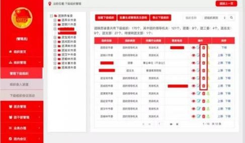 (2)直属下级组织为团支部,且有成员时,可以删除。删除后团支部的成员将全部进入待接转团支部。
