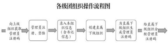 采取逐级向下级推进的方式,各级团组织的组织简称和组织类别由上级团组织管理员创建,其他具体组织信息由本级团组织管理员填写。各级团组织的主要操作流程如下: