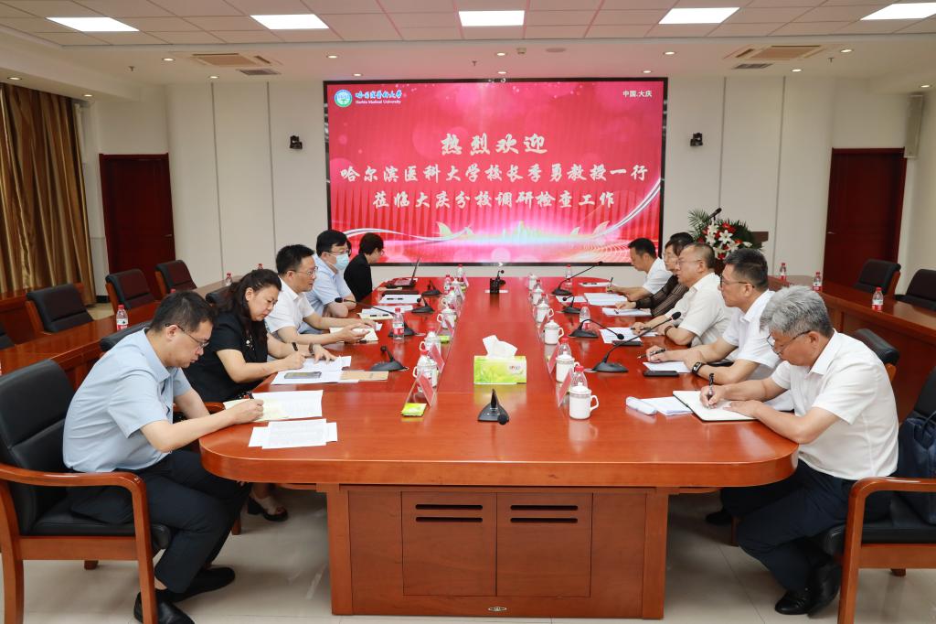 7月27日,校长季勇来到大庆分校调研指导工作,听取大庆分校工作汇报,分校校长乔远东介绍学校基本情况和近年来所取得的成绩,重点就教学、科研、师资队伍、学科建设、新医科建设、教学研究、人才培养等方面进行汇报。