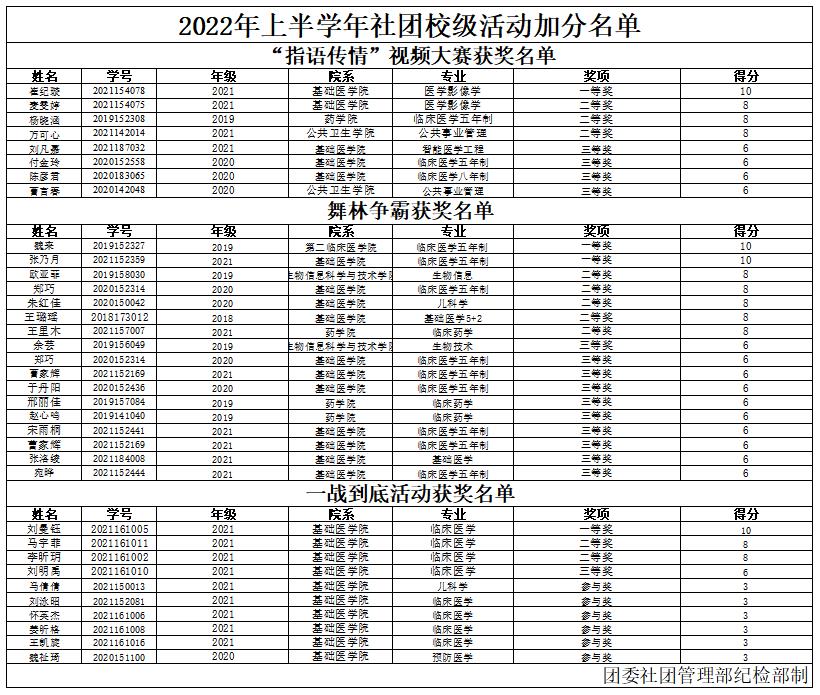 【团委社团管理部】2022年上半学年社团校级活动获奖名单公示-尊龙凯时平台入口