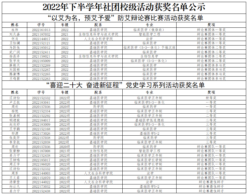 2022年下半学年社团校级活动获奖名单公示