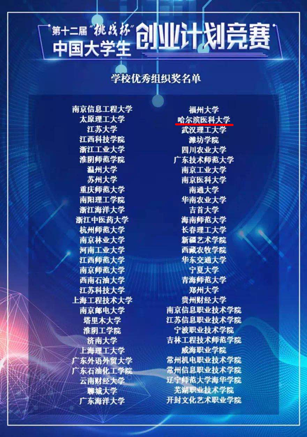 近日,由共青团中央、教育部、中国科协、全国学联、黑龙江省人民政府联合主办,东北林业大学、共青团黑龙江省委共同承办的第十二届“挑战杯”中国大学生创业计划竞赛在东北林业大学落下帷幕,竞赛结果面向全国高校公布。
