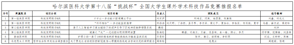 哈尔滨医科大学推报第十八届“挑战杯”全国大学生课外学术科技作品竞赛项目