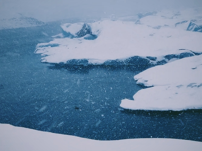 金属废墟同南极一样冰冷,像一头蛰伏在雪原深处的巨兽尸骸,没有被雪掩盖的巨大基地外壳闪着幽冷的光。风雪在这里裹挟着穿过废墟悲鸣,高大的废墟似乎直指宇宙深处,除却呼啸声,便只剩下如同宇宙一般虚无的寂静,宣告了生命和行动在这里殆尽。