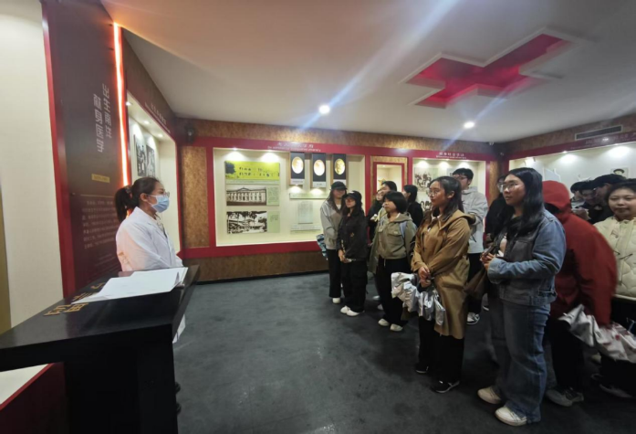 在洪洋老师的思政课上,她带领学生一起走进伍连德纪念馆,将抽象的精神传承转化为可触可感的学习体验,为24级的同学们树立了一个学习榜样。同学们全程专注聆听、认真记录,纷纷表示,这场身临其境的课堂,让伍连德博士的爱国情怀与科学精神变得无比鲜活、直抵心灵。大家深受触动,更加坚定了传承先辈遗志、刻苦钻研药学知识,未来为守护人民健康、服务健康中国建设贡献青春力量的决心。