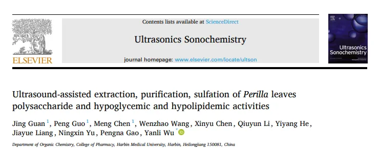 近日,我院有机化学教研室吴延丽教授团队在天然生物大分子治疗糖脂代谢紊乱研究方面取得重要进展,相关研究论文《ultrasound-assisted extraction, purificatiultrason sonochemon, sulfation of perilla leaves polysaccharide and hypoglycemic and hypolipidemic activities》已被国际期刊《ultrasonics sonochemistry》(中科院一区,if=9.7)收录并在线发表。